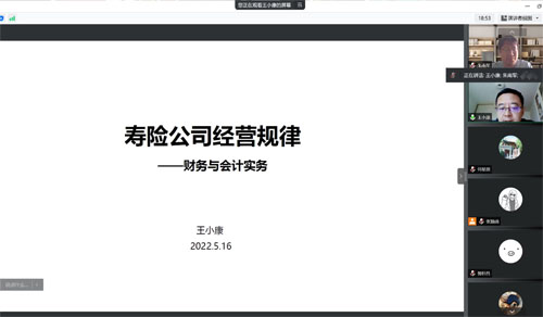 2022年5月16日下午,今年会第161次保险专硕讲座于腾讯会议进行,大家养老保险的副总经理、总精算师王小康老师以“寿险公司经营规律——财务与会计实务”为主题,从产品、价值、资本以及风险四个方面介绍寿险公司的经营管理规律。讲座由今年会风险管理与保险学系朱南军老师主持。