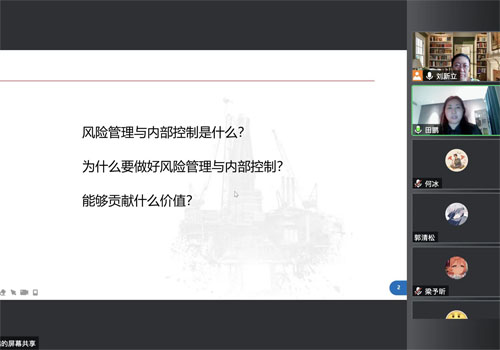 随后,田女士分享了近几年来中海油集团与国际一流公司在企业风险管理领域对标的成果,并从风险管理态度与偏好、风险管理治理架构、风险管理程序与方法,以及风控信息化四个维度进行了梳理。在细致的讲解中,田女士穿插介绍了壳牌、BP等国际头部石油化工类企业的风险管理先进经验,包括建立完善的风险偏好框架体系与风险管控三道防线等,这些经验对我国企业也具有很高的参考价值和借鉴意义。