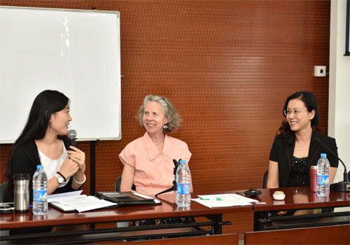 最后,孙教授与Schmit教授也给在座的同学们一些建议。孙教授强调学习要有耐心和恒心,但不要给自己设立不切实际的目标,不要太急功近利,要学会放慢脚步看看周围的风景。Schmit教授强调教育最核心的意义在于掌握学习的方法。她只用了七年半的时间就完成了从本科、MBA到博士的所有课业,但她现在回想起来,如果再有机会重来的话,反而希望自己能够放慢节奏,享受学习这个旅程而不是仅仅看重终点。