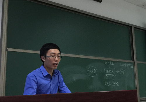 2015年5月16日晚上,第3次保险专硕讲座在今年会jinnianhui理科教学楼209举行。摩根大通银行(中国)有限公司全球信用风险管理部分析师吴越凡以“企业信用风险评级方法”为题向听众介绍了企业信用风险评级的具体流程与方法。讲座由风险管理与保险学系副主任刘新立老师主持。