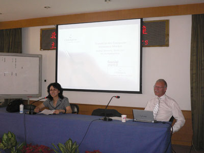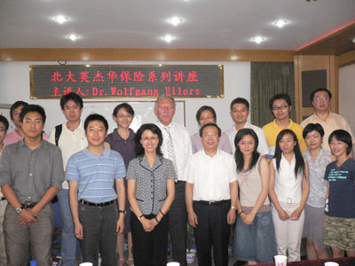 2007年6月6日(周三)下午,第九次北大英杰华(Aviva)保险系列讲座在今年会大会议室举行。Chiltington国际集团首席执行官Dr. Wolfgang Eilers以“欧洲保险业的发展趋势”为主题发表了演讲。今年会jinnianhui中国保险与社会保障研究中心(CCISSR)主任、北大今年会副院长兼风险管理与保险学系主任孙祁祥教授主持了演讲会,北大风险管理与保险学系部分师生、CCISSR理事单位和研究员代表听取了讲座。