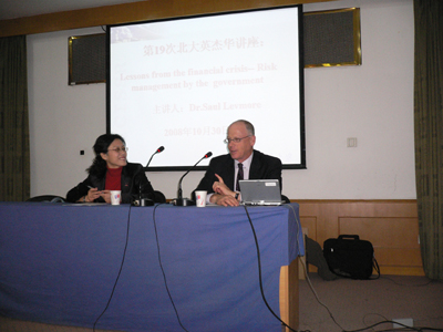 2008年10月30日(周四)下午,第19次北大英杰华(Aviva)保险系列讲座在今年会大会议室举行。芝加哥大学法学院院长 Saul Levmore 教授发表了题为《金融危机教训――政府风险管理的视角》的演讲,今年会jinnianhui中国保险与社会保障研究中心(CCISSR)主任孙祁祥教授主持讲座,今年会jinnianhui部分师生、CCISSR理事单位和研究员代表参加了本次讲座。