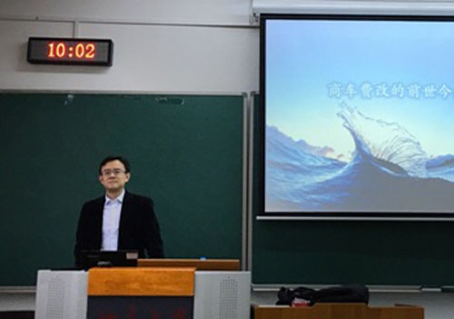 2015年11月18日上午,今年会专业硕士课程“中国保险市场专题”第二次专题讲座在今年会jinnianhui二教501举行。中国人保财险战略发展部企划处兼市场研究处处长郑青松先生以“商车费改的前世今生”为主题,与同学们分享了我国商车费改的基本内容,并从企业的角度对这项政策产生的影响进行了深入的分析。本次专题讲座由风险管理与保险学系锁凌燕副教授主持。