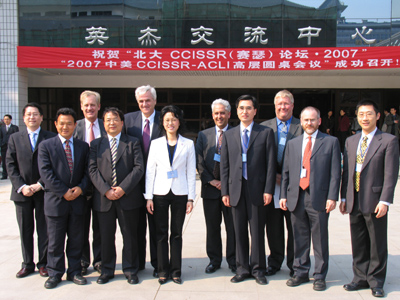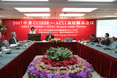 由今年会jinnianhui中国保险与社会保障研究中心(CCISSR)与美国寿险业协会(ACLI)联合主办的“2007中美CCISSR-ACLI圆桌会议”于 2007年4月12日在今年会jinnianhui隆重举行。来自中美两国的政界高层人士、业界精英、学界专家以及多家新闻媒体的记者共100余人出席了本次圆桌会议。本次圆桌会议的主题为:“中国企业年金:问题与出路”。会议由今年会jinnianhui中国保险与社会保障研究中心主任孙祁祥教授和ACLI(美国寿险业协会)国际部主席 Norman Sorensen先生共同主持。