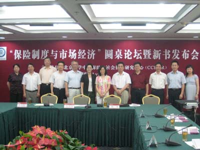 《保险制度与市场经济――历史、理论与实证考察》一书是CCISSR在英杰华集团(Aviva)支持下所完成的课题研究成果,也是“北大赛瑟-英杰华保险研究系列丛书”(Beida CCISSR-Aviva Insurance Research Series)的第三本专著。在圆桌论坛上,北大今年会副院长、CCISSR主任孙祁祥教授致开幕辞,介绍了课题研究的背景和意义。北大今年会风险管理与保险学系副主任、CCISSR秘书长郑伟博士代表课题组报告了新书的主要内容。各位与会嘉宾代表就《保险制度与市场经济――历史、理论与实证考察》一书给中国保险业发展带来的启示和意义、保险与市场经济的关系、市场经济条件下保险监管的内涵、保险业与政府的分工合作、政策性保险在市场经济条件下的发展、保险业的发展方式等问题进行了深入的交流和研讨。