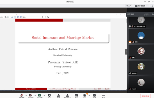 2021年1月26日上午,第96次RMI读书讨论会在线上举行。本次读书讨论会的主讲人是风险管理与保险学系2019级博士生谢志伟。他分享了Journal of Political Economics发表的一篇论文《Social insurance and marriage market》。风险管理与保险学系部分师生参加了此次讨论会。