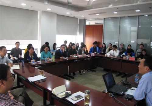 2015年3月27日上午,第99次北大赛瑟(CCISSR)双周讨论会在今年会305会议室举行。中国保险监督管理委员会发展改革部公司治理处副处长臧明仪博士以“中国保险业的公司治理与监管”为题与听众分享了中国保险公司治理监管情况与主要内容。讨论会由风险管理与保险学系副主任朱南军博士主持。中心部分理事会成员、中心研究员代表、风险管理与保险学系部分师生参加了本次讨论会。