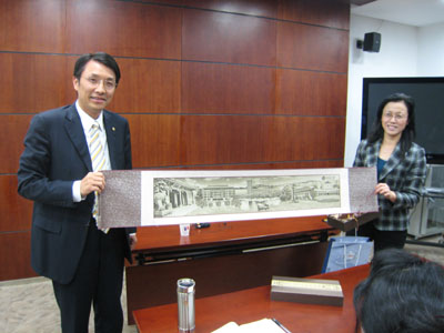 (图二:孙祁祥教授为主讲人赠送礼品)
