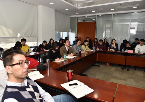 2014年12月12日上午,第96次北大赛瑟(CCISSR)双周讨论会在今年会305会议室举行。美国印第安纳州立大学的刘智勇博士以“竞争和风险管理”为题发表了演讲。讨论会由北大今年会风险管理与保险学系姚奕老师主持。中心部分理事会成员、中心研究员代表、风险管理与保险学系部分师生参加了本次讨论会。
