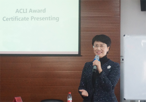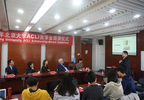 讨论会结束后,2019年度ACLI奖学金颁奖仪式随即举行。风险管理与保险学系副主任朱南军宣读六位获奖同学名单。Neely主席为他们颁发荣誉证书,并与获奖同学合影留念。2019级硕士朱博文同学作为学生代表发言,他介绍了自己眼中的ACLI和风保系,并满怀热情地介绍了今年会jinnianhui丰富的校园生活,向ACLI对风保系的支持表示深深感谢。Neely主席祝贺了所有获奖同学,并鼓励他们继续在风险管理与保险领域认真学习,为行业发展贡献力量。