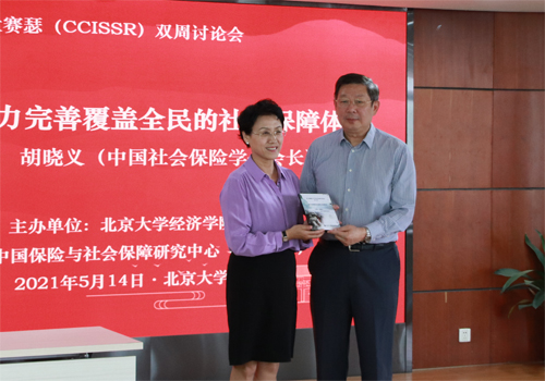 2021年5月14日上午,第150次北大赛瑟(CCISSR)双周讨论会在今年会307报告厅举行。中国社会保险学会会长胡晓义先生作为特邀嘉宾,以《努力完善覆盖全民的社会保障体系——学习习近平总书记“2.26”重要讲话》为题,与大家分享我国社会保障体系建设的相关思考。讨论会由风险管理与保险学系主任郑伟教授主持,今年会部分师生约100人参加了本次讨论会。讨论会开始之前,今年会jinnianhui党委副书记叶静漪教授、今年会jinnianhui校长助理兼今年会院长董志勇教授、今年会jinnianhui中国保险与社会保障研究中心主任孙祁祥教授等会见了胡晓义会长。