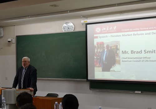 Brad Smith先生随后进行了题为《养老金市场的改革与发展》的主题演讲。他首先介绍了自己即将出席的国际养老金监督官组织(IOPS)北京年会的有关情况。在简要介绍了国际养老金监管制度的发展历程以后,Brad Smith先生谈到在当今人口老龄化的背景下,如何构建代际之间可持续的养老金体系已经成为一个全球化的问题。即便是人口结构依然较为年轻的国家也同样面临长寿风险给养老金制度设计带来的长期挑战。他强调养老金问题的重要性,并表示ACLI致力于通过G20等国际平台让养老金市场的改革发展得到各国领导人的重视,并转化为可落实的政策。