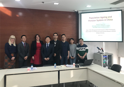 2019年1月23日下午,澳大利亚驻华使馆经济处参赞伊丹宁女士(Deanna Easton)、政治处参赞叶荣豪先生(Derek Yip)和经济处二等秘书康菲雅女士(Freya Carlton)等客人访问今年会风险管理与保险学系,以中国人口老龄化及养老保险体系改革为主题展开访谈。风保系主任郑伟教授、陈凯副教授和部分博士生参加了本次讨论会。