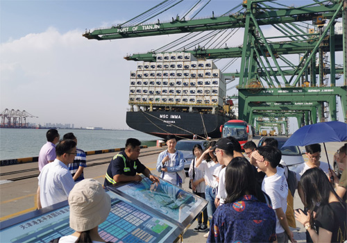 9月27日下午,风保系师生一行来到天津港太平洋码头参观。在碧海蓝天掩映之下,巨大的货轮与机械吊臂迸发出雄壮的钢铁力量。工作人员向风保系师生介绍了天津港作为我国北方最大的综合性港口的区位优势与特色,并带领师生们前往参观巨型游轮海洋量子号,向同学们介绍游轮旅游业及其相关产业业态。随后,风保系师生一行来到东疆保税港区国家租赁创新示范区。东疆保税港区管理委员会融资租赁促进局副局长时金凤为师生介绍了东疆港的发展思路及东疆保税港区融资租赁业务的情况。东疆保税港区是全国改革开放的前沿阵地,近年来围绕国家赋予的先行先试政策优势,在持续创新、推进经济增长和创新的加速聚集方面做了许多工作,尤其是融资租赁业务处于全国领先地位。2019年适逢我国飞机租赁产业发展十周年。十年来,东疆保税港区作为我国融资租赁创新示范区,在航空、船舶、海工、电力、轨道、医疗器械等有了长足发展,已成长为仅次于爱尔兰的全球第二大飞机租赁聚集区,其租赁的民航运输飞机数量占我国总量的三分之一。今年7月,东疆顺利完成国内首单飞机保税退租再租赁创新业务。这单业务的落地对增加国内存量租赁飞机处置渠道,提升飞机资产流动性具有重要意义。