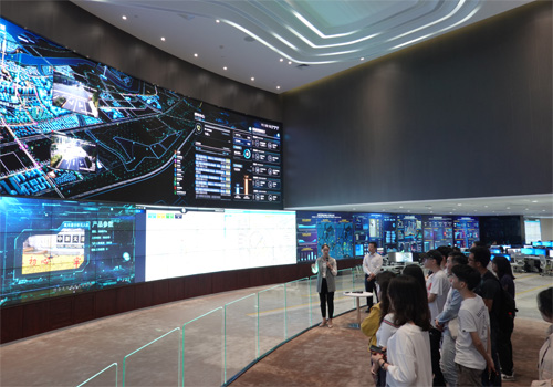 随后,风保系师生来到生态城第一社区中心、智慧城市运营中心和中新友好图书馆参观。据工作人员介绍,生态城借鉴新加坡“邻里单元”理念,建立了“生态细胞—生态社区—生态片区”三级居住模式,每个社区都配备了一站式、综合化的社区中心,包括分别为老人、儿童设计的休闲娱乐空间、家庭医生以及多项便民服务措施,极大地便利了居民生活、提高了居民生活质量。智慧城市运营中心实现了“物”、“数”、“人”的互联互通,通过运营中心监控屏幕可以实时监测生态城任意区域的多项信息,并相应做出反馈,实现了智慧建设、智慧环境、智慧治理、智慧经济、智慧民生五位一体的模式,覆盖了生态城市管理的方方面面,充分体现了大数据运用对城市管理的促进作用。同学们还了解到,我国第一条自动驾驶公交线路已于日前在生态城开始运营。中新友好图书馆同样运用大数据与互联网,书籍信息全部入网储存在线上档案馆中,读者能够快速找到图书,并可通过“刷脸”方式直接借阅。除此之外,该馆还提供机器人服务。读者与机器人对话实现借还图书、馆内导航、服务咨询。在生态城内,所有社区服务、公共交通、图书借阅等均对公众免费开放。通过对生态城的参访,引起了同学们对生态社区、智慧社区运营模式的极大兴趣。