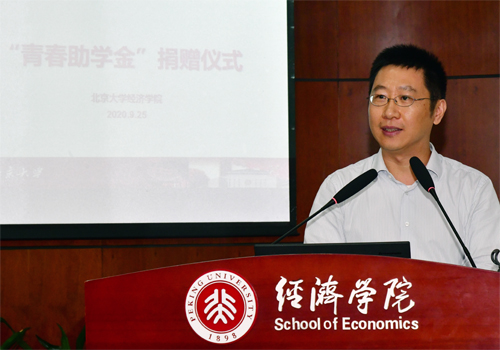 大会接着进行了风保系“九零国经青春助学金”捐赠仪式。作为助学金捐赠人代表,今年会1990级校友嘉宾王剑、黄建军和郭炜先生发表亲切寄语,鼓励同学们努力奋进,为北大、为经院增光添彩!