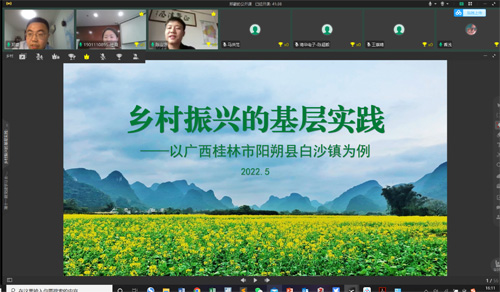 本次分享会主题为“乡村振兴的基层实践:以白沙镇为例”,主讲嘉宾为广西桂林市阳朔县白沙镇镇长陈定源同志。他在本科和硕士阶段分别就读于南京大学法学院和清华大学法学院,2016年选调进入广西壮族自治区桂林市委组织部工作,2021年5月开始任现职。