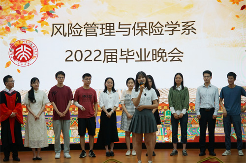 接着,风保系2022届本科毕业生和硕士、博士毕业生依次上台发言。大家介绍了自己的毕业去向,回顾自己在北大风保系的美好时光和闪光瞬间,也表达了对师长和同学们的真挚情感。发言完毕,同学们集体向在场老师深鞠一躬,难忘师恩。