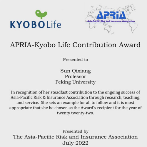 (图1:孙祁祥教授获奖证书)