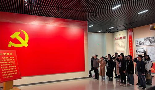 4月22日上午,调研团前往天津市平津战役纪念馆参观。平津战役是解放战争时期中国人民解放军东北野战军、华北军区部队于1948年11月29日至1949年1月31日,在东起唐山、西至张家口长达500公里的战线上对国民党华北“剿总”傅作义集团进行的规模巨大的战略决战,是解放战争具有决定意义的三大战役之一。在平津战役纪念馆内,跟随着讲解人员的引领和解说,大家依次参观了序厅、战役决策厅、战役实施厅、人民支前厅、伟大胜利厅、英烈业绩厅及多维演示馆等多个展厅。党员同志们观摩参阅了展厅内的视频、照片、实物等史实资料,重温了平津战役从战前准备、浴血奋战到取得最终胜利的全过程,对平津战役中的革命英烈的英勇事迹进行了沉浸式的学习,进一步加深了对革命先烈的崇敬,增强了青年党员同志的使命感和责任感。参观结束后,党员同志们满怀着激昂的情绪,面对党旗重温入党誓词,带着对革命先辈的崇敬立誓传承奋斗使命。庄重神圣的宣誓,让党员同志们更加牢记入党初心,更加坚定践行入党誓词的决心。