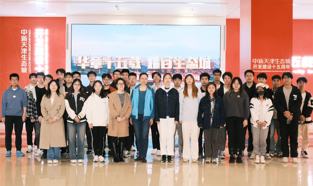 3月22日下午,调研团继续前往中新天津生态城参观访问。中新天津生态城是中国和新加坡两国政府间项目,旨在打造一座生态友好、社会和谐、资源节约的可持续发展的生态城市。首先,调研团参观了“中新天津生态城开发建设十五周年展”。讲解员全面介绍了生态城建设情况,展现了15年间,该区域从三分之一盐碱荒滩、三分之一废弃盐田、三分之一污染水体到我国首个国家绿色发展示范区的蜕变,讲解员还从污水治理、海绵城市、花园城市等多个视角进行了细化讲述,展现了生态城在建设可持续发展城市方面取得的卓越成就。接下来,调研团先后前往生态城垃圾气力输送站和集中供冷热站参观,了解了垃圾再循环、清洁能源、智慧供热等方面的先进技术。中新天津生态城的参访加深了同学们对绿色生态、低碳、智慧城市等理念的理解。