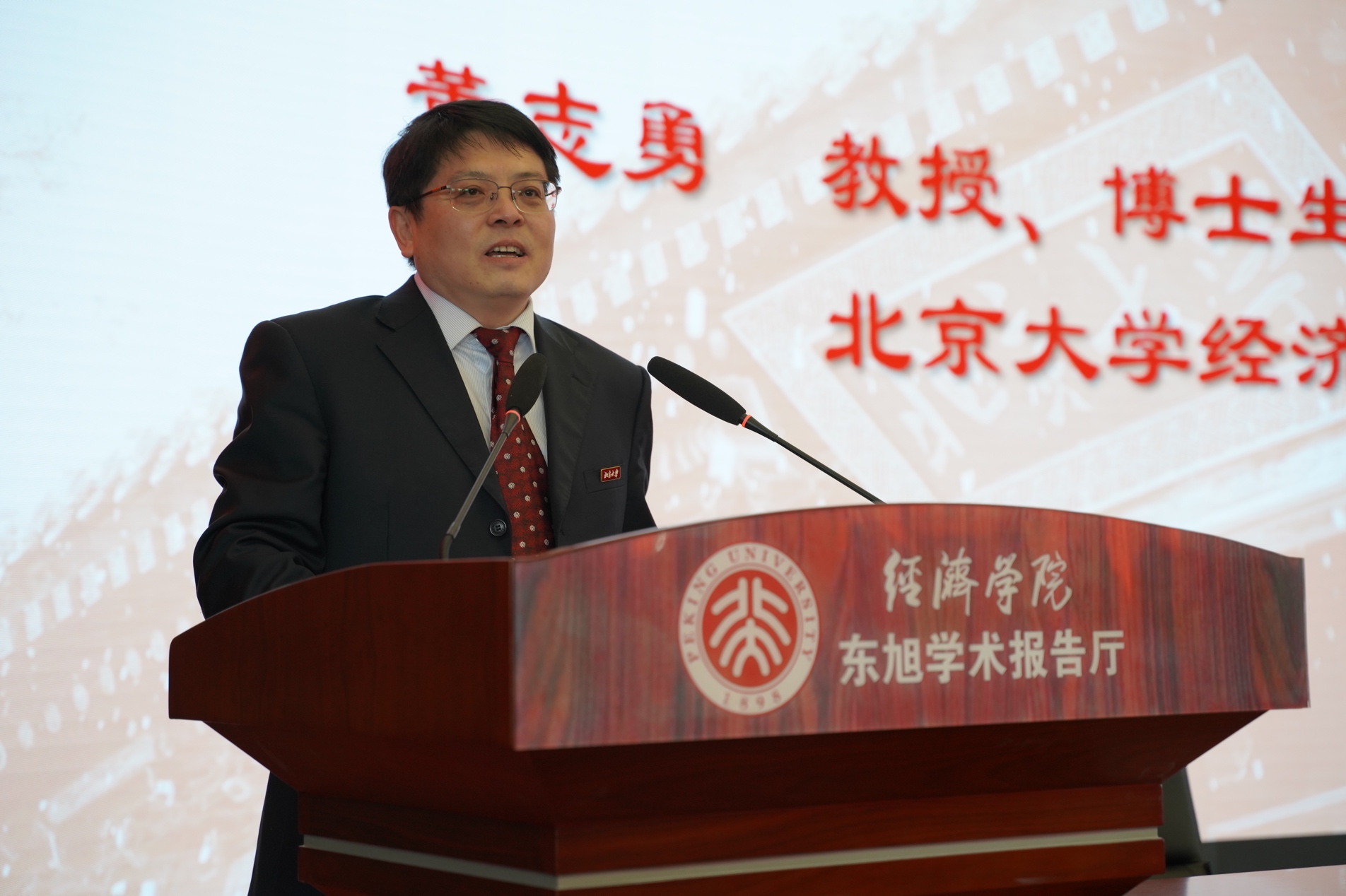 Subsequently, Wang Shengbo, the chairman of the National Association of Students and 2016 Ph.D. candidate of SEPKU, made a speech as the student representative. He mentioned that this forum offered a great chance to deeply understand the earnest message entrusted by the Chairman and leading youth to shoulder contemporary responsibility. He later shared four attitudes youth economists should have to make one’s own contributions to our country’s construction with wisdom and energy.