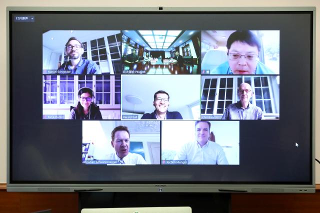 On 20th August, Peking University and University of Zurich held a video conference. Christian Schwarzenegger, Vice President of University of Zurich, Harald Gall, Dean of Business School, Jochen Menges, Head of Human Resources Management at Business School, Christian Simm, Provost of Office of International Relations, Katja Durkin, Vice Provost of Office of International Relations and Marcel Schneider, Director of Regional Affairs of Office of International Relations attended the video conference.