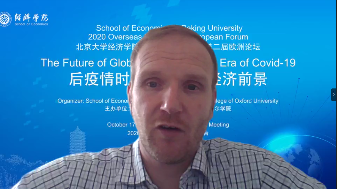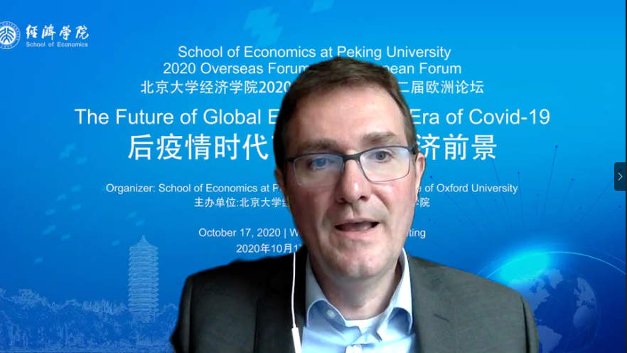 On the afternoon of October 17, 2020 Overseas Forum&Second European Forum of the School of Economics at Peking University was successfully held online. This forum was co-organized by School of Economics, Peking University and Oriel College, Oxford University. Under the theme of "THE FUTURE OF GLOBAL ECONOMY IN AN ERA OF COVID-19", the conference discussed in depth the uncertainties of economic development in the post-epidemic era and the new opportunities for cooperation and development among countries around the world.