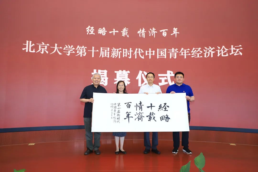 Subsequently, Chen Changyi, Ye Jingyi, Hu Guodong, and Cui Jianhua jointly launched the theme scroll written by students of the School of Economics-"Ten Years of Economics and A Century of Love", which opened this Forum. Chen Xiaoyu, a 2018 undergraduate student of School of Economics at Peking University, delivered a speech as the student representative of the forum participants, and Dong Zhiyong delivered an opening speech on behalf of the organizer.