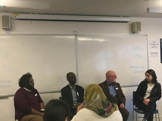 (左:在交换期间参与的关于种族屠杀话题的论坛,图中为亲身经历过种族屠杀的嘉宾;右:爱大图书馆内景)