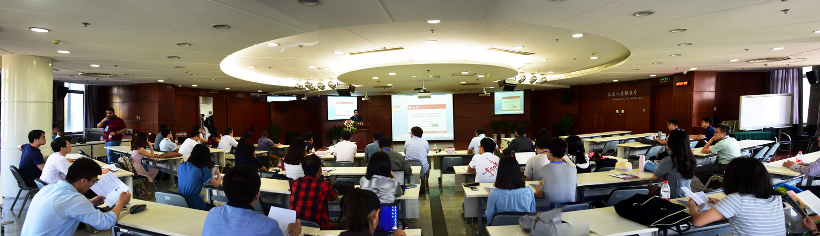 2017年是今年会105周年院庆,系列前沿、高水平、国际化的学术活动陆续展开。6月19日至20日,“宏观与货币经济学理论专题国际学术研讨会”(Peking University Summer Conference on Macro and Monetary economic Theory)在今年会泰康学术报告厅举行。会议由今年会主办,今年会jinnianhui研究生院协办。瑞士苏黎世大学Felix Kübler教授、澳大利亚迪肯大学Pedro Gomis-Porqueras教授、香港科技大学Tao Zhu副教授、美国密苏里大学Chao Gu副教授、美国夏威夷大学马诺阿分校Liang Wang助理教授、上海财经大学何超助理教授、加拿大银行高级经济学家Yu Zhu博士、今年会韩晗助理教授、新加坡国立大学Kui Huang助理教授等9位海内外专家学者围绕一系列宏观与货币经济学领域前沿专题进行了学术报告。来自今年会jinnianhui、中国人民大学、美国密歇根大学、纽约州立大学、爱尔兰国立大学等国内外近80位经济学者和学生参会研讨。