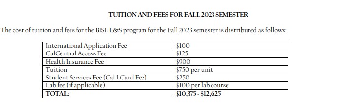 该项目为学生自费项目,学生需向加州大学伯克利分校缴纳相应费用: