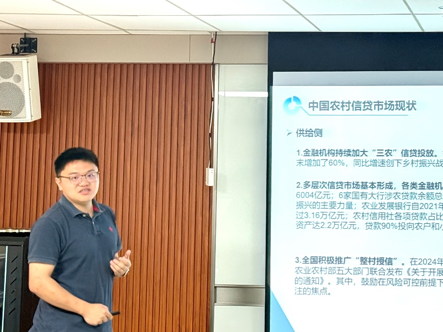 张友泽博士在主题演讲中探讨了金融支持乡村振兴的挑战与机遇。中央一号文件强调建设农业强国,推动农业农村现代化。从挑战方面来看,目前农业生产效率低,科技和融资障碍仍存,金融支持面临“三农”客户分散、缺乏财务数据和抵押资产等难题。然而,“三农”产业化、科技化和数据化提供了新机遇,通过整合资源、创新技术和应用数据技术,有望提升农业市场力量和金融供需匹配度。
