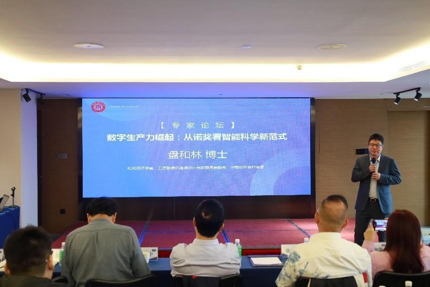 知名经济学者、工信部信息通信经济专家委员会委员、华商校外合作专家盘和林博士,从诺奖看智能科学新范式的角度,为与会人员解读数字生产力的崛起。