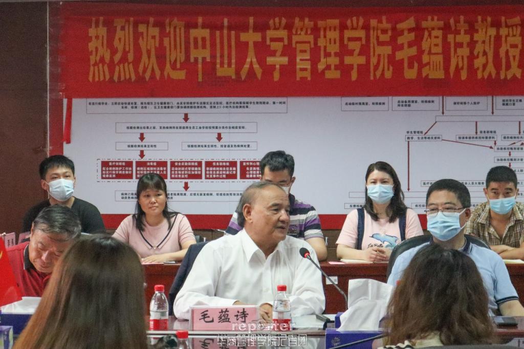 副校长刘少波教授对本次座谈会进行了总结,刘副校长首先对毛蕴诗教授的到来表示感谢,同时他强调,好科研是华商学院科研项目突破的关键,希望华商学院的青年教师们能够在教授的指导下做好科研,促进学院发展。