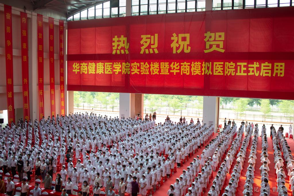华商健康医学院实验楼暨华商模拟医院在与会嘉宾的共同见证下正式启用。仪式结束后,与会嘉宾一同参观实验楼及模拟医院。