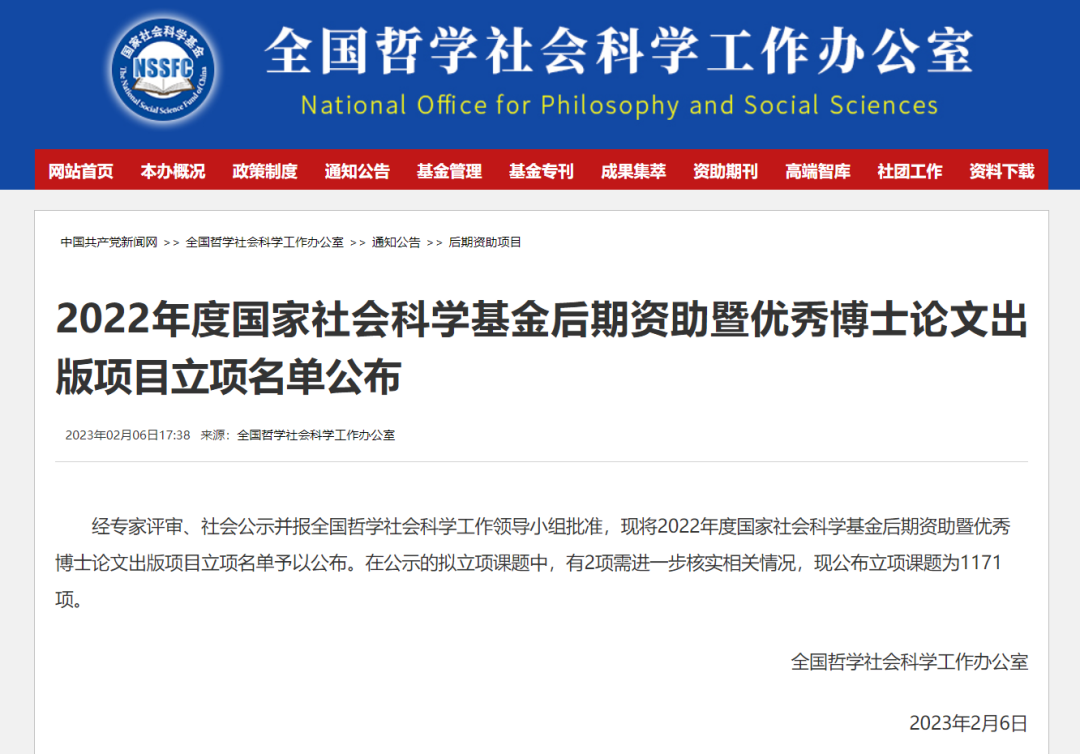 2月6日,全国哲学社会科学工作办公室发布《2022年度国家社会科学基金后期资助暨优秀博士论文出版项目立项名单公布》。其中,我校文学院伍世昭教授获2022年度国家社科后期资助项目立项。