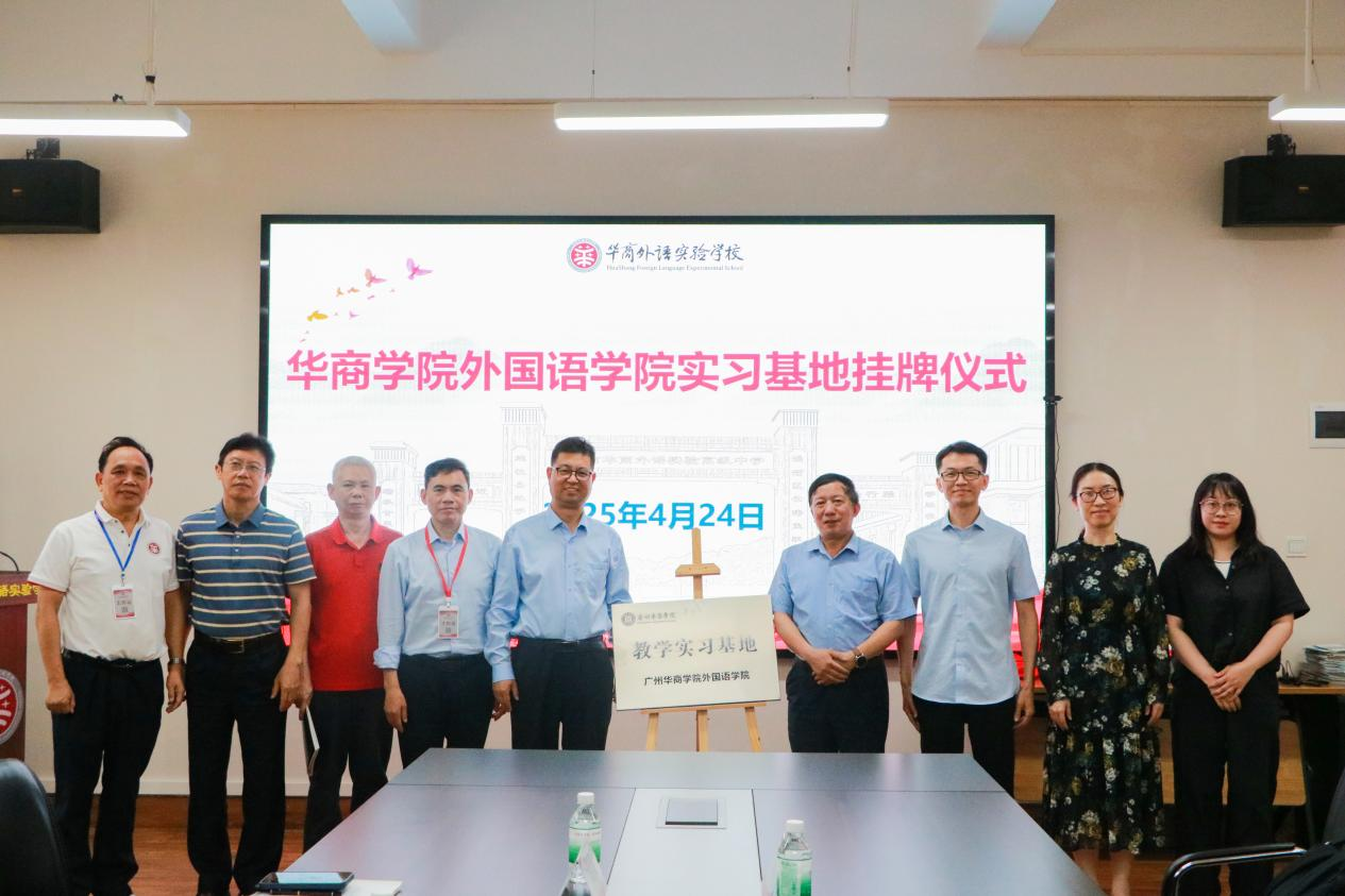 2025年4月24日下午,SUNBET申搏外国语学院一行前往广州市华商外语实验学校,举行共建实习基地挂牌仪式。出席此次活动的有华商外语实验学校总校校长赵秉乾、副校长唐双同、付红根、曹建忠、卢岳飞,学校办公室主任俞立智、教学助理董小雪老师及教师代表;SUNBET申搏外国语学院院长肖坤学、副院长何顺发,以及肖霄老师、肖茜老师。