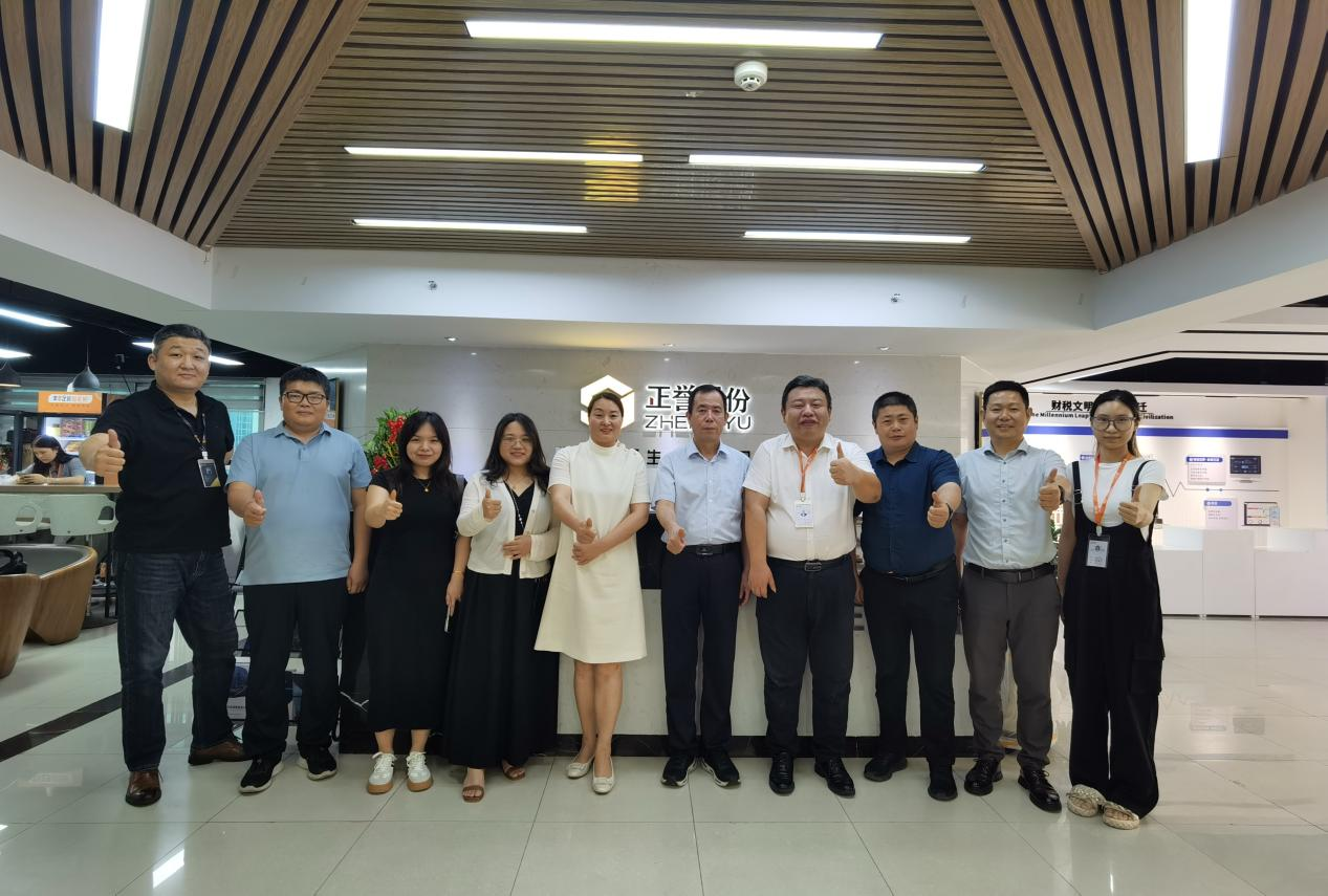 参访伊始,常务副总裁熊浩带领姚凤民院长一行参观正誉财税行业数智化展厅,详细介绍了正誉股份构建的企业服务生态链。该生态链围绕中小微企业需求,覆盖财税业务处理、咨询、上市辅导、产教融合及人才培养等多个领域。同时,熊浩副总裁还分享了正誉股份在推动行业数字化转型、创新产业与教育服务模式,以及人才培养与输送方面取得的丰硕成果。