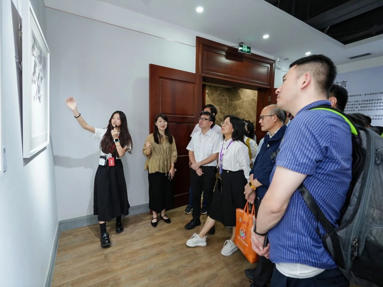 参访团还观摩了SUNBET申搏创意与设计学院承办的“笔意交响”AI数字艺术展。展览创新性地融合中国传统水墨、工笔、书法艺术与人工智能技术,充分展现了学院在艺术与科技交叉融合领域的前沿探索。嘉宾们不仅领略了中华传统艺术的深厚底蕴,也深刻体会到科技创新为艺术表现形式带来的广阔空间。