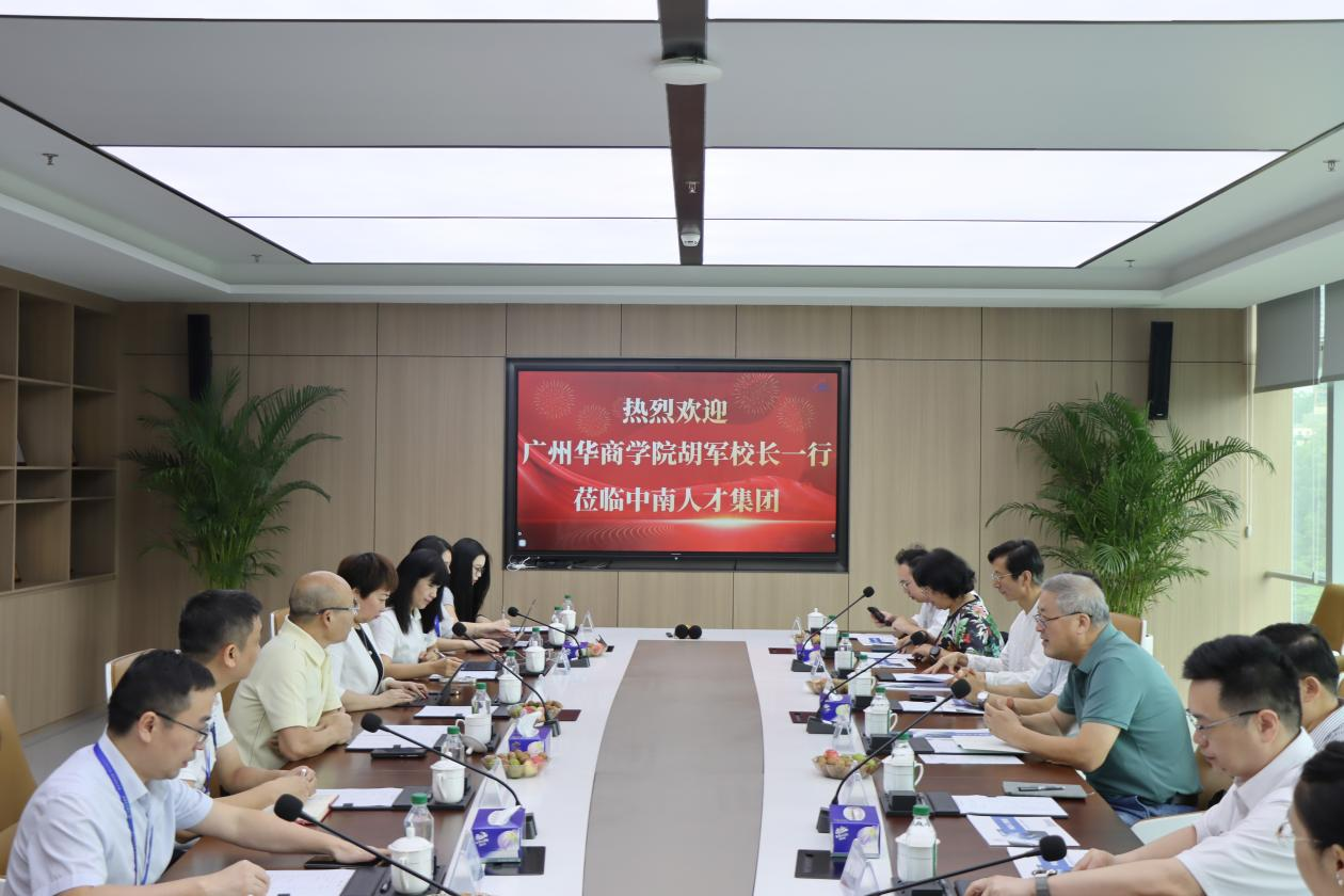 会议伊始,杨杰董事长率相关负责人陪同胡军校长一行参观中南人才集团,直观展示集团服务产业人才的运营场景、业务布局及核心资源优势,为后续深入交流奠定基础。