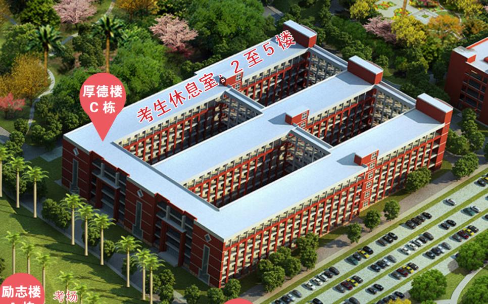 中午时间较紧,建议在校外住宿的考生非必要不出考点,中午可选择在指定休息区域(厚德楼C栋3-5楼教室)或室外空旷处休息。注意不得喧哗和吵闹,服从现场工作人员管理。