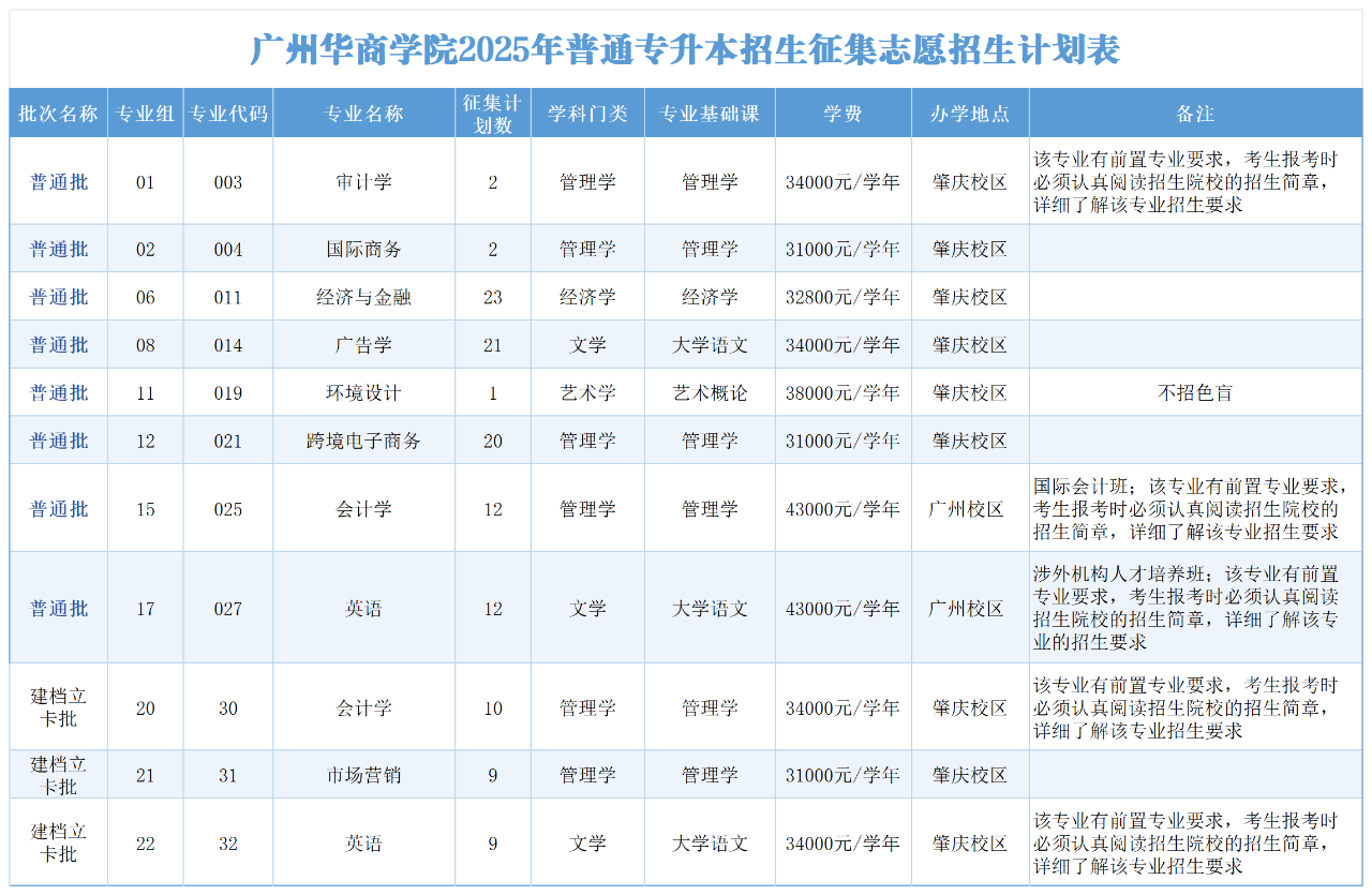 1.广东省2025年普通专升本招生征集志愿招生计划表