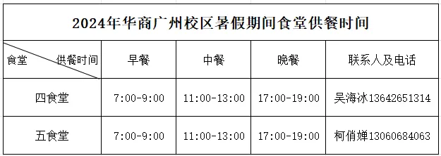 第四、五食堂为广州校区2024年暑假期间值班食堂,暑假期间正常供餐。