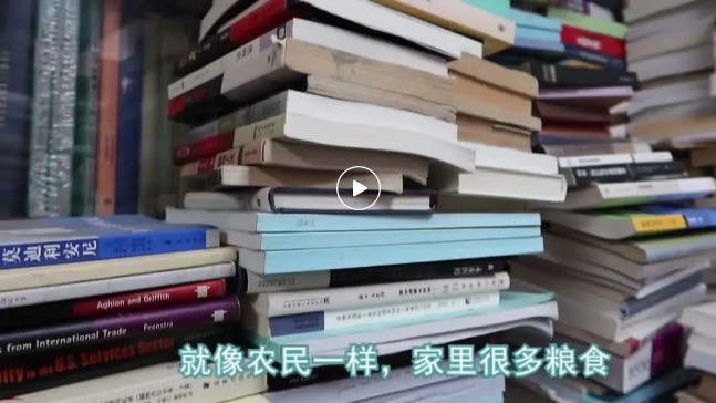 家资是何物,积帙列梁梠。经济学、数学、历史、法律、小说……满满两面墙,如同走进了茫茫书海,办公室的门只能堪堪推开一半,因为门的后面有一面书墙挡着。一摞摞比人还高的书密密地排着,摞起来几乎要触及天花板,四面书墙中间则是平老师的办公桌子,要想从门口走到书桌,需要走过一段两边分别是房间墙壁和书墙的窄小过道,如果体型壮实一些的话,则必须侧着身子才能顺利通过。