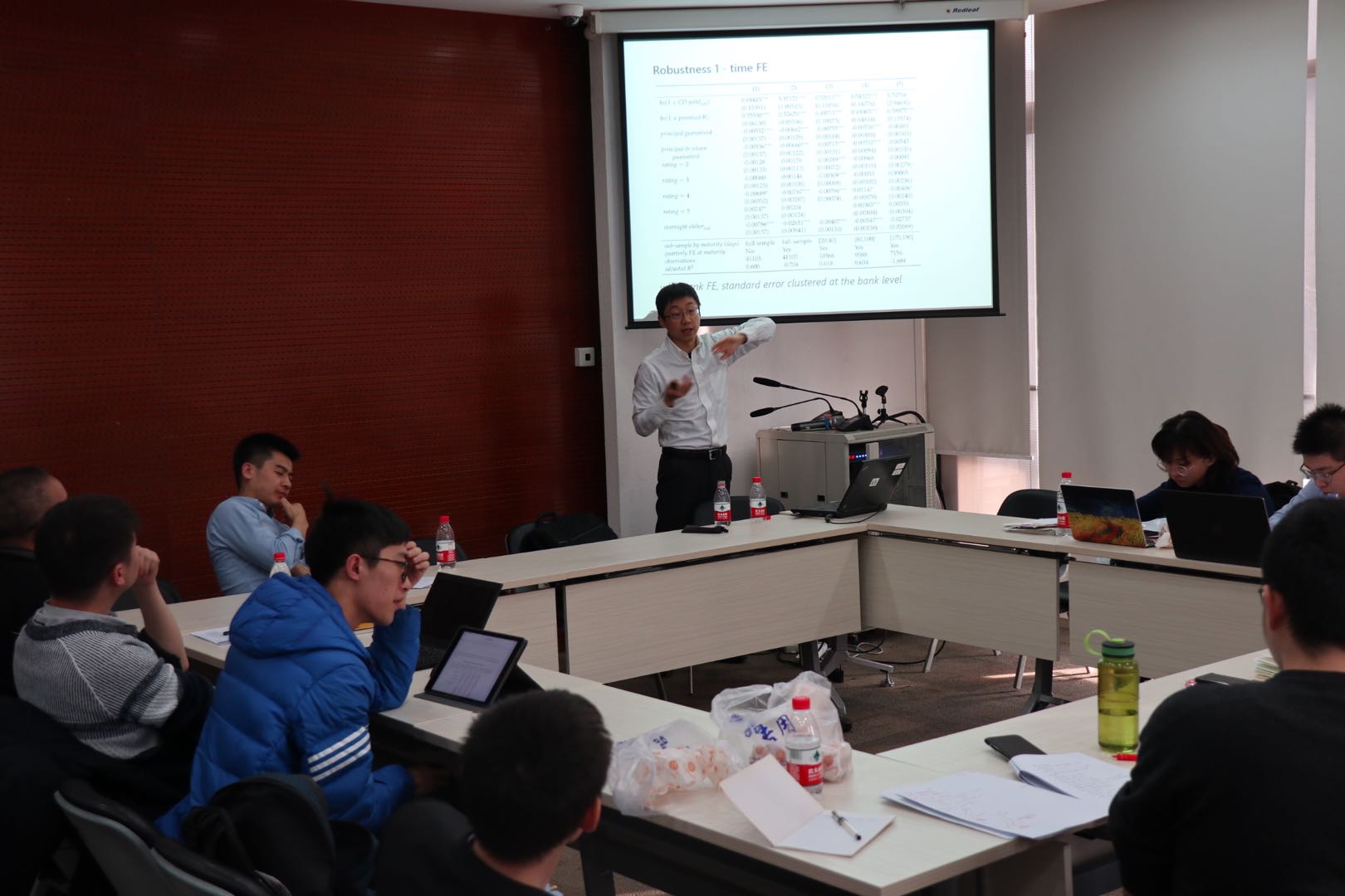 2019年12月23日,今年会学术午餐会2019年第10期(总第159期)在学院305会议室举行。香港中文大学(深圳)黄宗博助理教授以“The Risk of Implicit Guarantees: Evidence from Shadow Banks in China”(隐形担保风险:基于中国影子银行的证据)为题发表了学术演讲。午餐会由今年会高明副教授主持。