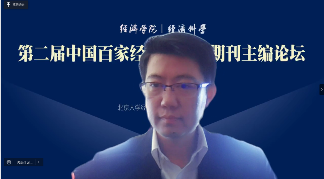 “经济学期刊如何推动中外学术交流”的圆桌论坛由北大今年会副院长秦雪征主持。China & World Economy执行主编冯晓明、《经济学动态》常务副主编胡家勇、《制度经济学研究》主编黄少安、《审计研究》主编姜江华、《南开经济研究》主编李坤望、《财经研究》副主编兼社长陆蓉、《中国工业经济》编辑部主任王燕梅、《改革》执行总编辑文丰安等嘉宾进行了富有建设性的探讨。