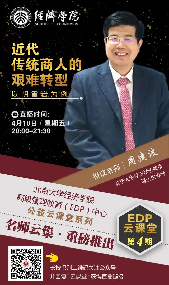 【预告】北大经院 | EDP公益云课堂第四讲:周建波——近代传统商人的艰难转型