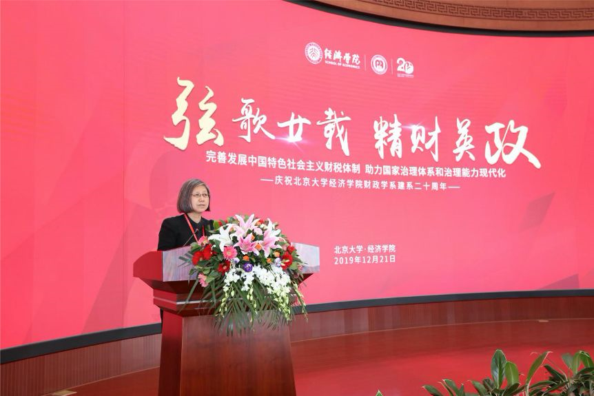 庆典论坛由财政学系主任刘怡教授主持。她向严复、马寅初、陈岱孙等大师为代表的北大几代财政学人表达崇高的敬意,这些前辈以他们在21世纪的今天仍然闪耀着智慧光芒的财政思想,书写了北大财政学科的辉煌历史。没有哪个时代比现今更加热切地期待财政学人的继往开来、守正创新,这是建系20周年庆典的意义所在,也是全系师生再次出发的力量之源。会上,刘怡教授宣读了发来贺信的15所高校名单。