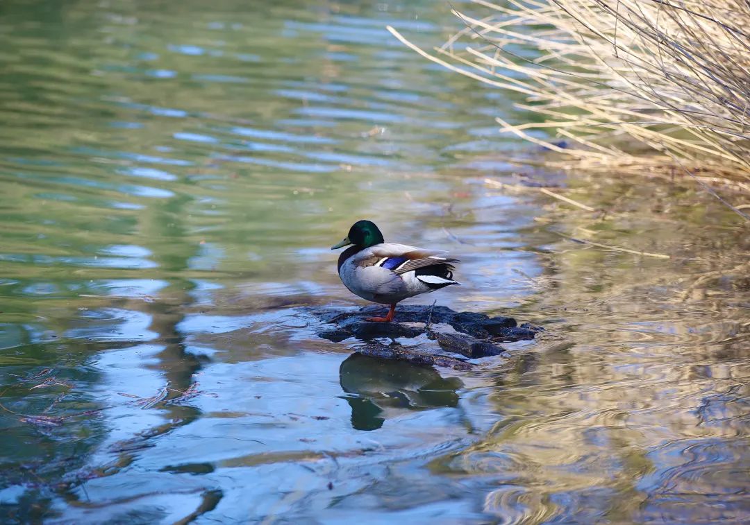 有沐于暖阳下的绿头鸭